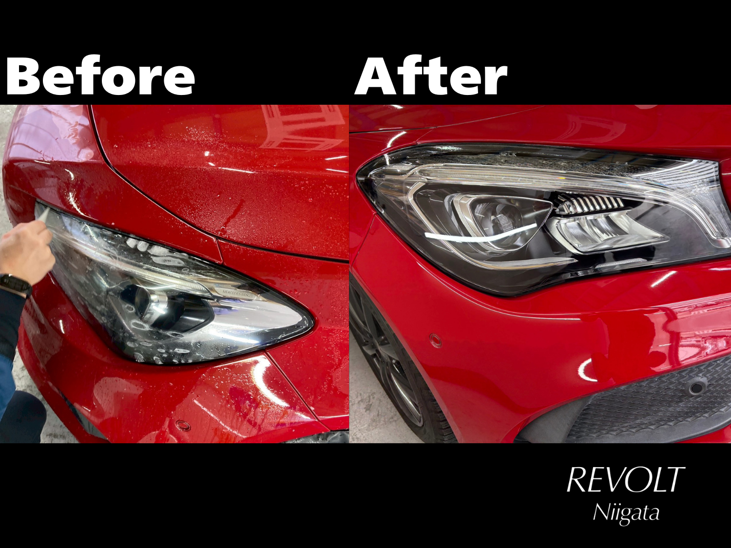 メルセデス・ベンツ CLA250 ヘッドライトプロテクションフィルム施工を行いました。       ヘッドライトはお車の印象を大きく左右する重...