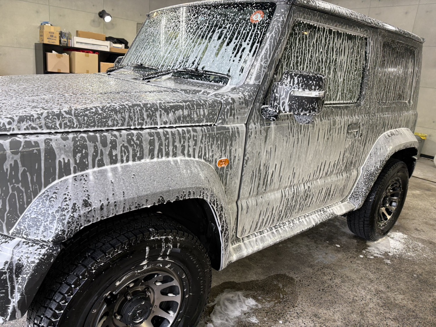 スズキ ジムニーシエラ(ミディアムグレー)洗車メンテナンス完了です!