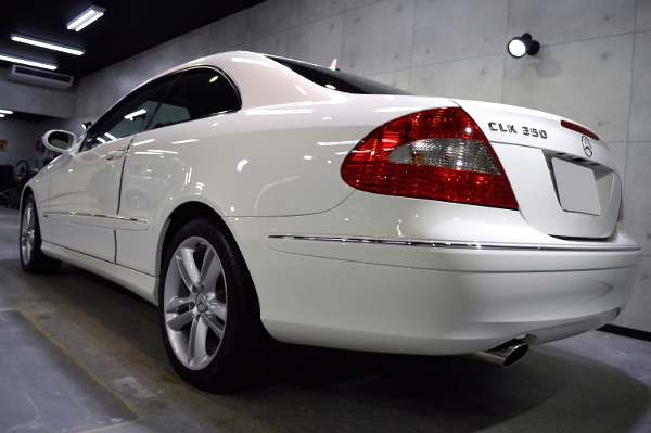 新潟市中央区からお越しのお客様メルセデスベンツ CLK350・アバンギャルドアバンギャルド(カルサイトホワイト)のご入庫、コーティング作業が完了致しました。